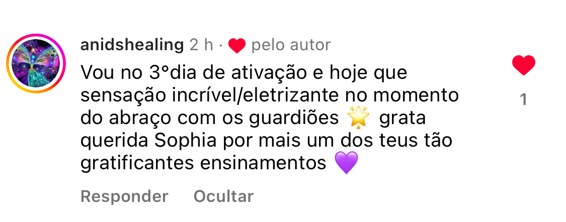 Recuperas a tua clareza espiritual, soberania energética, consciência desperta, vitalidade interior e conhecimento intuitivo do teu propósito de vida.